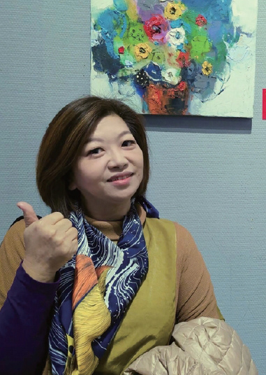 image-096-黃淑真-飛瀑清泉-50F-師承油畫家游守中繪畫風格,油彩以層層堆疊的方式,形成厚實的油彩肌里,將平面畫作賦予立體感,能使人觀看,彷彿置身於畫作中,感受瀑布的清涼與大地的寧靜,也轉化忙碌的步調,與不好的情緒,讓正能量成為生命的好養份。